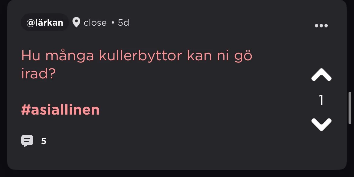 Endast de relevantaste frågorna finns på lärkans jodel, för mig är svaret kanske 8